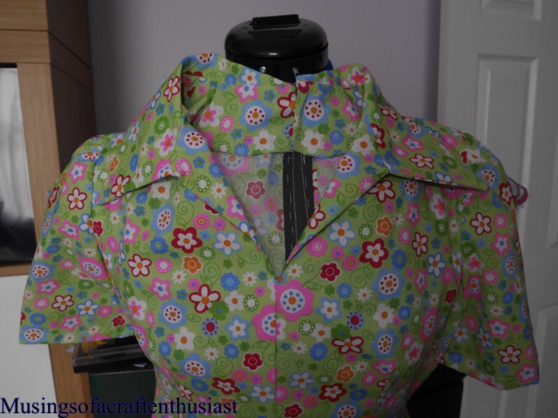 here is a close up of the collar, I bought the fabric at Kayes Textiles during the week, it is a £2.50 poly/cotton, it is a bit stiff but it gives the dress some body, hopefully if it is sunny during the week I’ll take some photos of me wearing it.