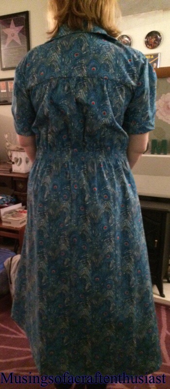 here is Denise’s finished dress you can just see the buttons, we were a bit concerned that the front wouldn’t be quite wide enough over the bust, but that appears to be all right. we forgot you give you a hands in pocket shot, but the pockets are nice and roomy mine could probably have been slightly higher, but it does mean I won’t be continuously putting my hands in them.