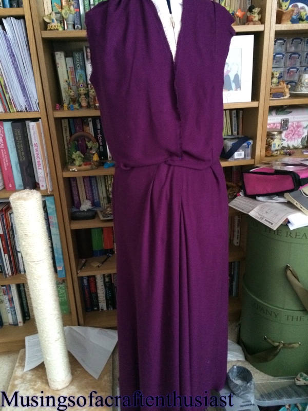 There is another dress but that isn’t just hand stitching and looking at it, it will need taking apart and redoing, it is one of the first Haslam patterns I tried, the fabric is too drapey for it and I think the underarm measurement is too long, as when I attached it to my dummy there must have been two inches extra fabric and I am sure this is wrong.