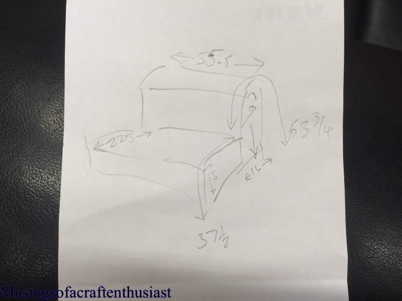 Most of the pieces for the cover are rectangles, there was a rectangle for the the seat and front and one for the seat upright and the down the back ( i cut that as one piece) the side piece is also in two parts, a rectangle for the seat, and one running down the back with a curve on top.