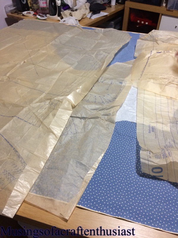 last week we go all the pattern pieces cut out, Denise is using a lovely Blue Cotton with white stars and dots, bought locally at Kayes Textiles.