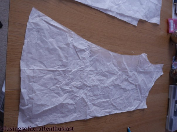 Once you have the front peice you copy that to the back peice, apparently the front and back should be close to the same size. You pin these together on your dress from and take some more markings duplicate it on the other side of the back peice. Once you have your front and back pattern peice you stitch them together and try them on your dummy and see if there are any other tweaks needed.