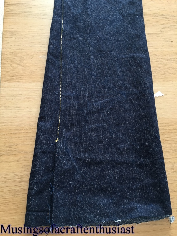 I have a very nice soft pair of Levi jeans which are getting so thin that they probably don’t have much more wear in them. When I saw this class I thought it might be ideal for copying them. The first thing I did was to wash the jeans to make sure that they had ‘shrunk’ back to size. I decided on which side to copy, I went to the side without the knee hole :-).