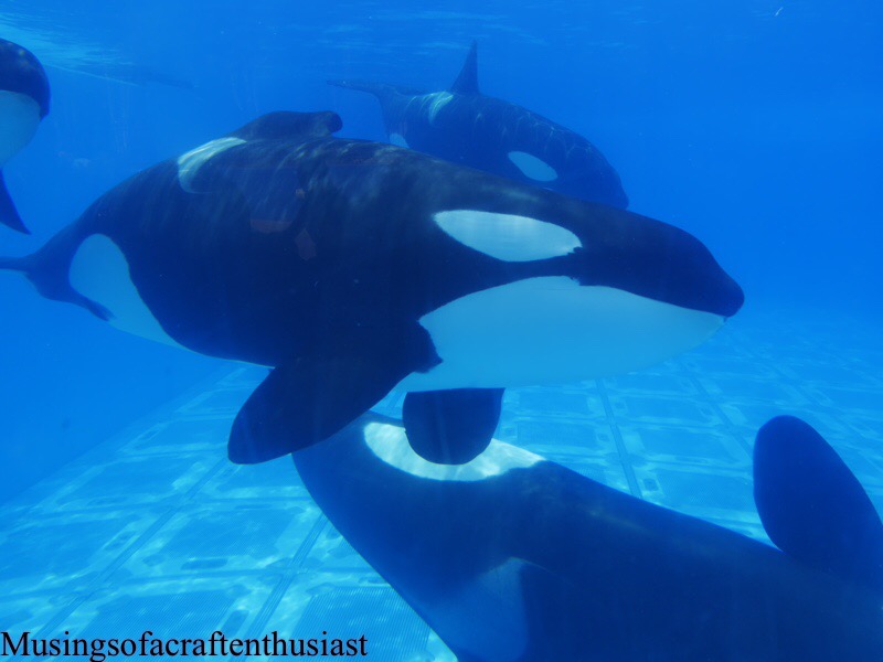 we didn’t go to the Shamu show as there were only two showing available to us 14:00 and 18:00 and we didn’t want to hang around until 18:00. We did however see some whales swimming around in a group which was amazing.