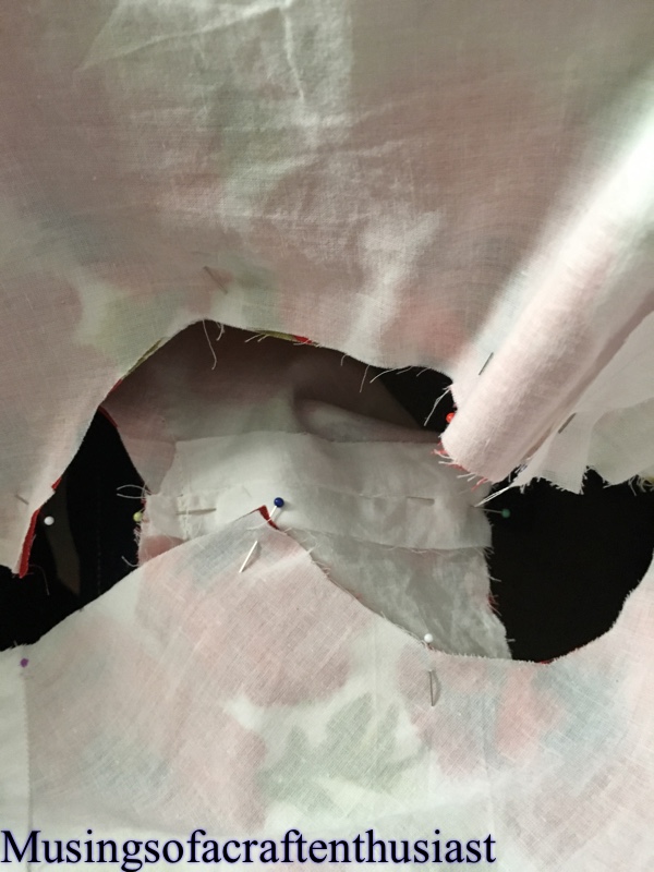 After both peices got a good iron, and using more pins than usual I attached both peices of the bodice together.