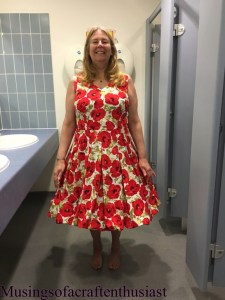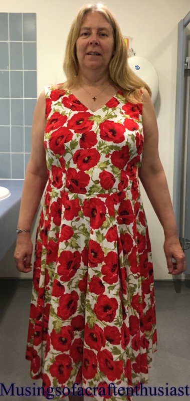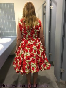 With a 22inch zip in the back and a small hem done on the sewing machine it was finished with 2 days to spare. I’m assuming that with the holes the islet fabric stretched out of shape as the top didn’t fit as well as the muslin, but I was very pleased with it.