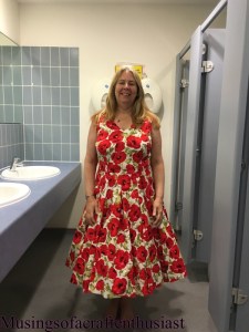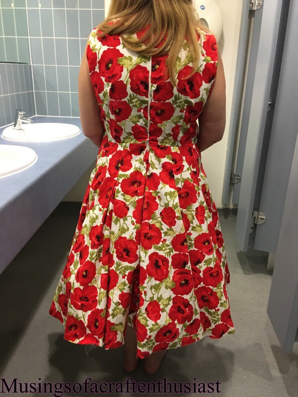I don’t know about you but I have a lot trouble with invisible zips, the biggest problem I have is, the darned thing works when I put it in, then by the time I try on the item of clothing the Zip diesn’t work, this is what happened with this one, I unzipped it put it over Liz’s head went to do it up, no matter how much I tugged on the zipper it would not work 😦 the dress is pinned together in these pictures.