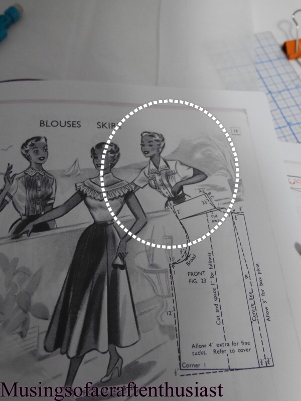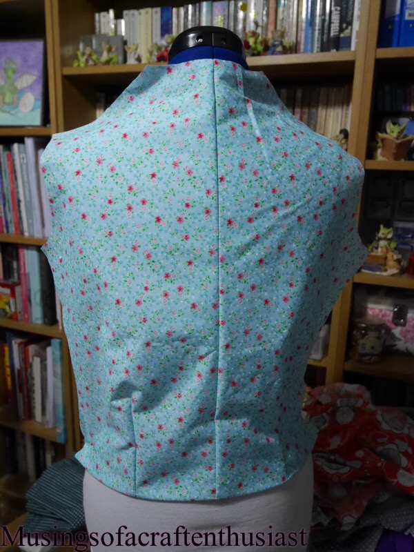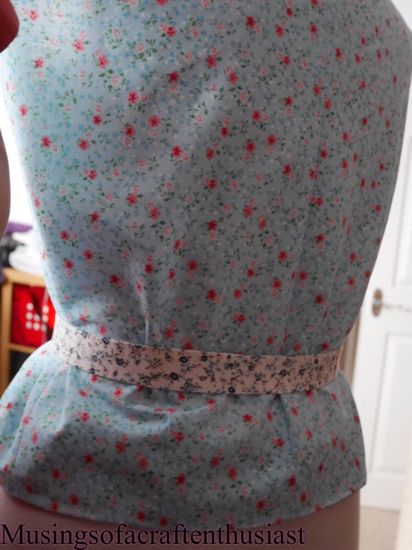 There was one other problem but that was connected to my fabric choice, I used a piece of poly cotton which was a bit stiff and I think the fabric should have a lot more drape to it. As it was the blouse looked very boxy and was quite uncomfortable across the back and sleeves, (this should be fixed by the nearly 3 inches added to the back piece across the shoulders).