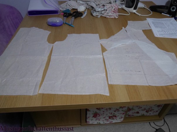 I have redrafted the pattern pieces and cut them out in some sort of pink shiny fabric, that I’m not sure why I bought it the colour is totally not what I would wear.