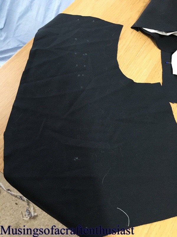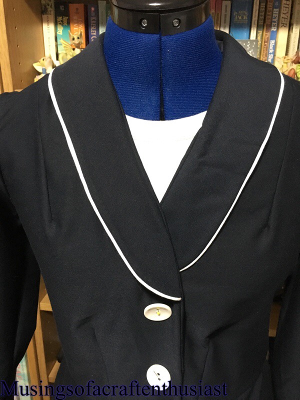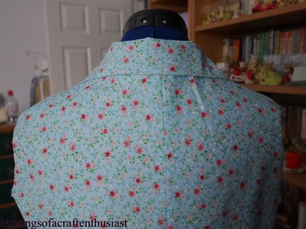 As I said in my previous post I had a problem with the sleeves and the collar, first off the the collar I misread the the instructions and it ended up about an inch and a quarter short, not too bad you say, and you would be right all it meant was that instead of folding over each other the met in the middle ( I thought I took a photo, obviously not) it was one of those things I knew would niggle at me so I changed it, at the same time I also decided that the dress was going to be too dark so I thought about piping.