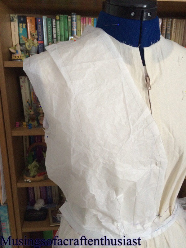 I redid the foundation drafting and made a mock-up of the bodice, I then took an inch out of the under arm length.