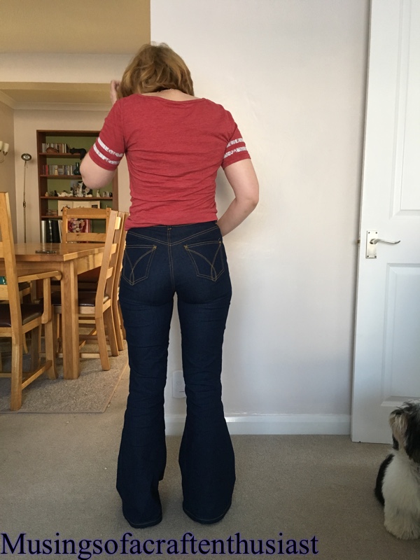 This pair (third) I went back to my trusty man on eBay and bought the dark blue denim he had advertised with the black. I bought 3 meters out of which I cut two pairs of jeans and my skirt blogged about here so far I have only had time to put one pair together, I was stitching them at the same time but with different coloured top stitching, once I started confusing my self I decided against it.