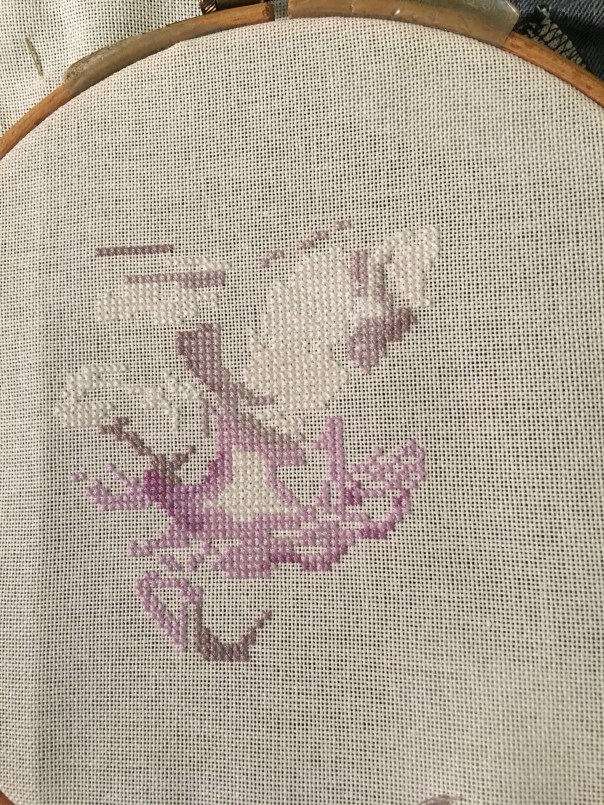 I also have a small picture that I spotted in The World of Cross Stitching started that I am stitching on a hoop, which means I can take it to the Hospital with me.
