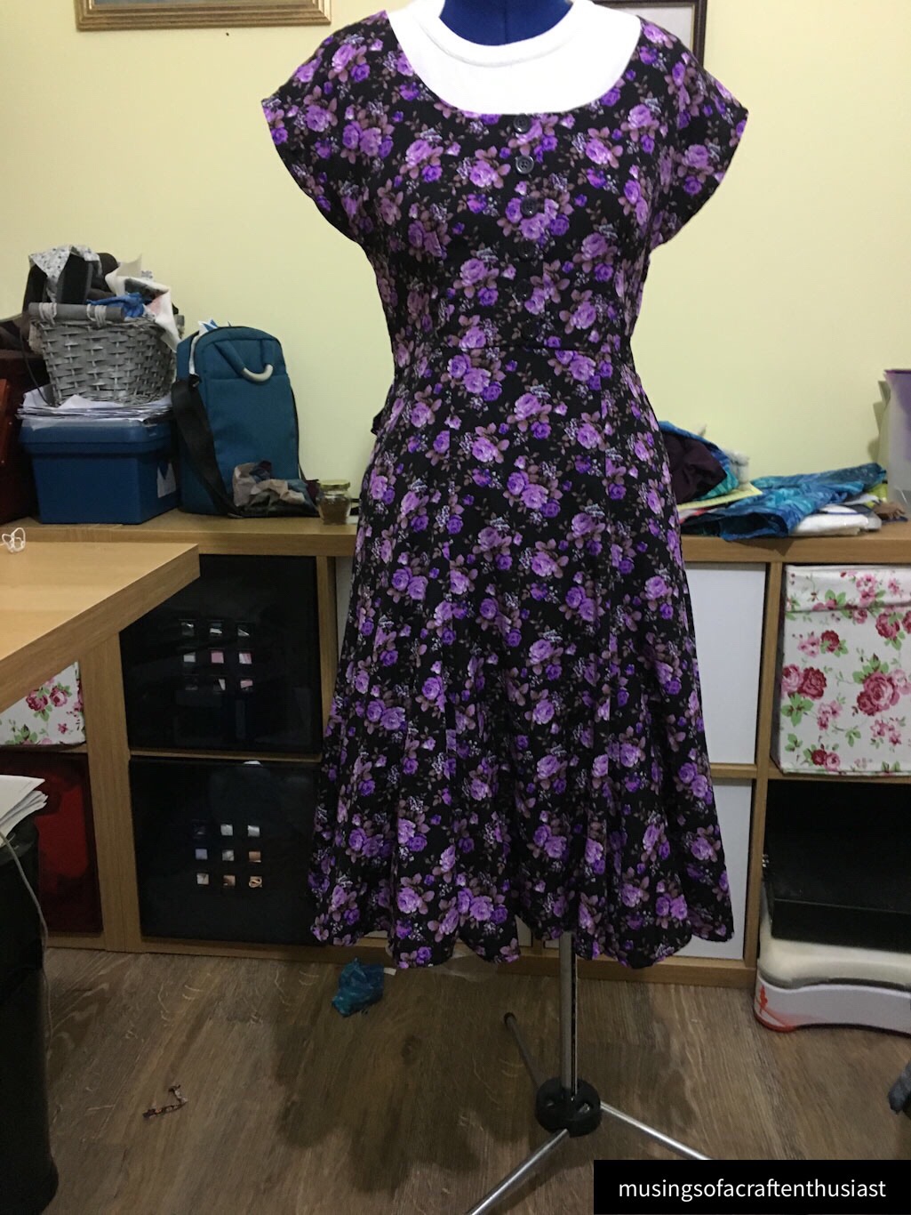 Apart from the hem which is surprisingly long the dress was really easy to put together, as I mentioned above I had to do the hem twice, the first time I tried to do a small hem by eye, usually I would have had no problem with this, but with the shaky left hand it was uneven and bumpy. Even while I was stitching it I knew it was a mistake but still I kept going instead of just unpicking a small bit and going with the second choice which looks a lot better, and was easier.