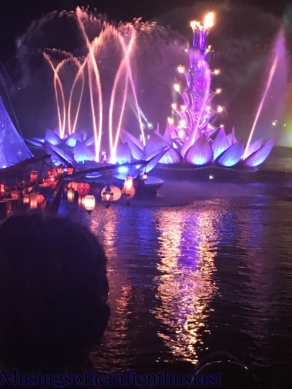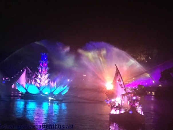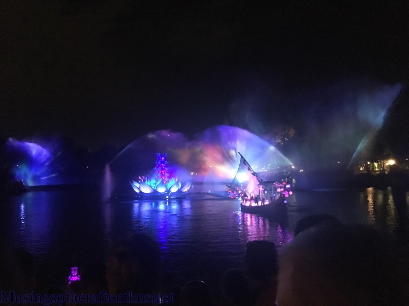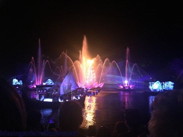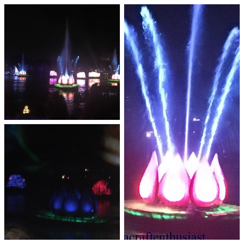 The new light show was very colourful and relied on projections onto spray of waters it showed animals jumping from one stream to to another.