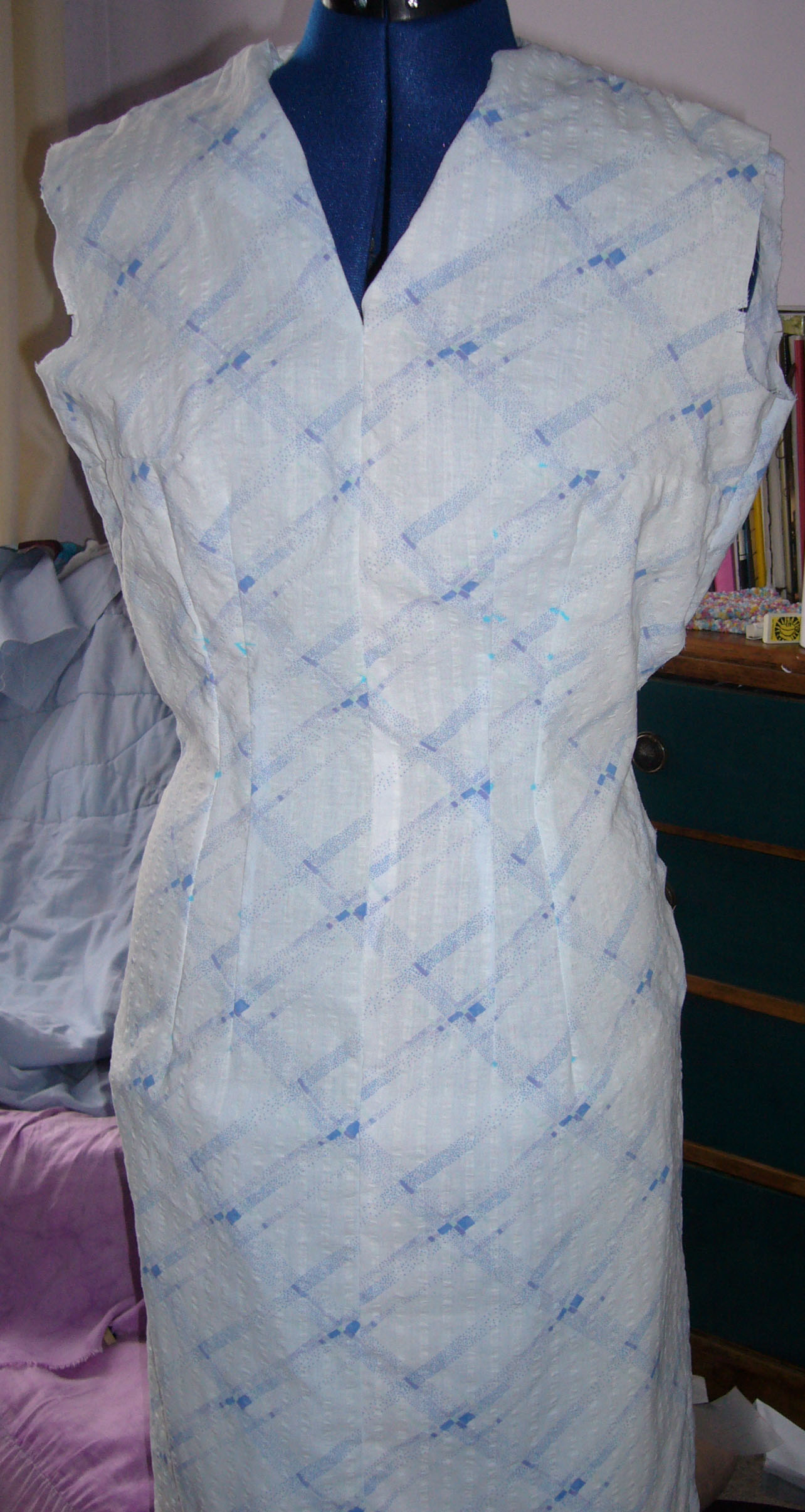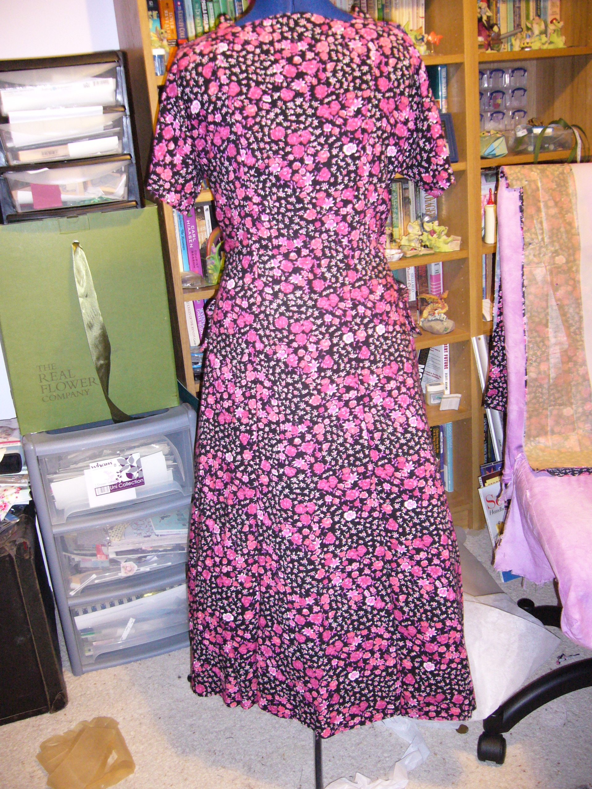 This needs the second part of the bodice stitching in and a zip up the side, it also needs hemming, you have probably already seen photos of it without realising, as the dress makers dummy is wearing it at the moment.