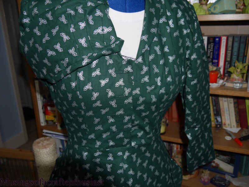 The collar is one of those ‘part of the bodice front’ collars where you put in a couple of darts in front then it wraps round to the back, and tada you have a collar, once you have fiddled about trying to get it to play nice with the back piece and wonder why you have ended up with a fold in the wrong place. I had no problem with the back and it just went in, I’ll be intrested to see if it goes together as well the next time.
