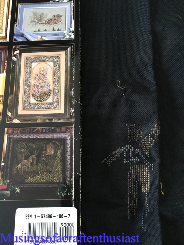 to finish, I had it in the evenweave version purchased from the designer himself at a long ago knitting and stitching show, I picked this one of the many started as I thought it would be easy enough because of the fabric and blocks of colour but enough of a challenge because of the back stitching, so went over to amazon to buy the companion kit the secret garden 2