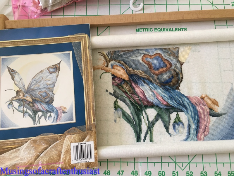 I also have a small picture that I spotted in The World of Cross Stitching started that I am stitching on a hoop, which means I can take it to the Hospital with me.